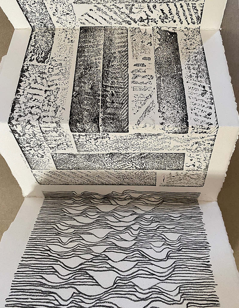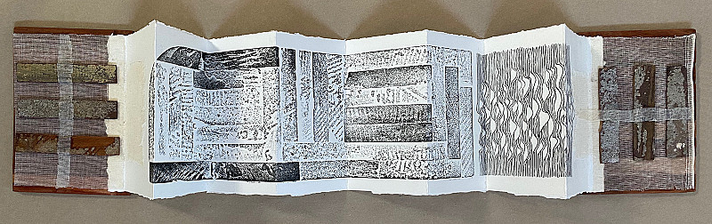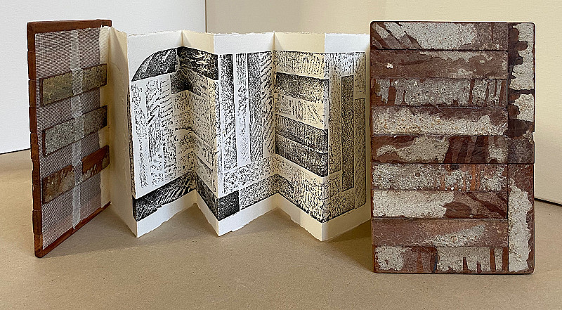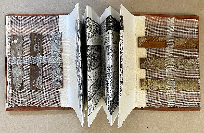 , Emma Willemse , Covers: Parquet floor blocks and scrim. Inner: Collograph, wooden shards, charcoal