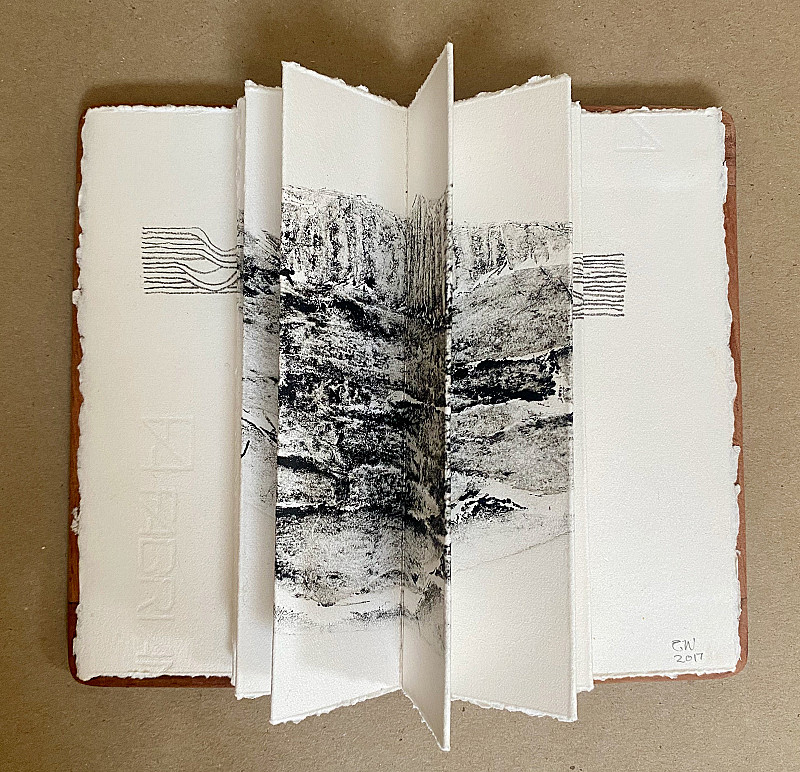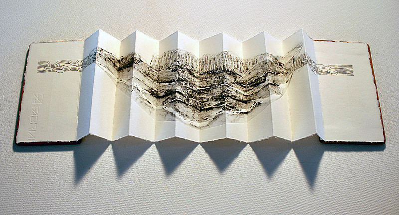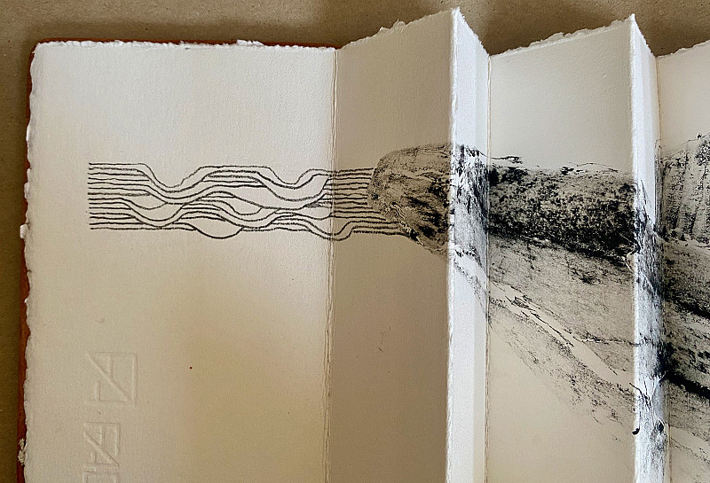 Covers: Parquet floor blocks and scrim. Inner: Collograph print and charcoal drawing