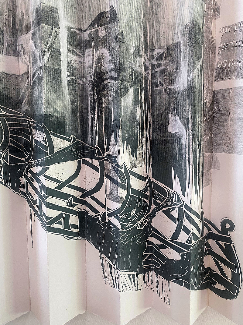 , Emma Willemse , Cover: Parquet floor blocks and scrim. Inner: Linocut, collagraph and charcoal