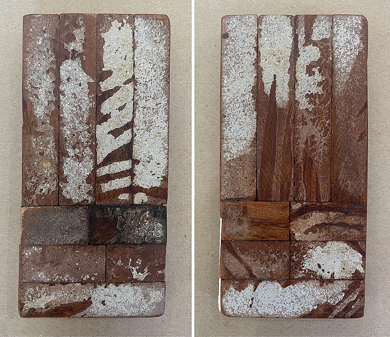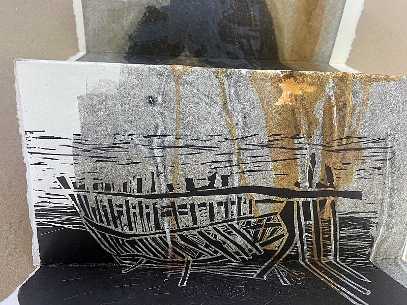 Cover: Parquet floor blocks. Inner: mixed media collage