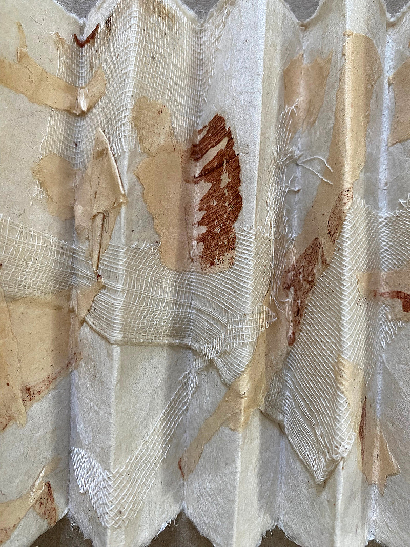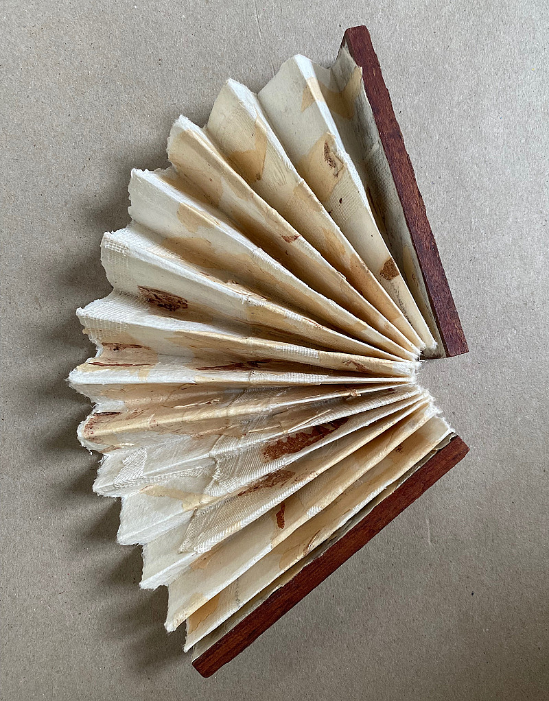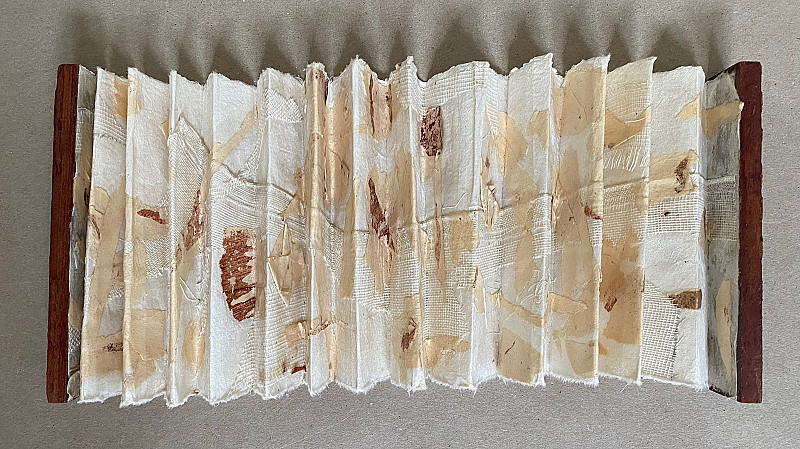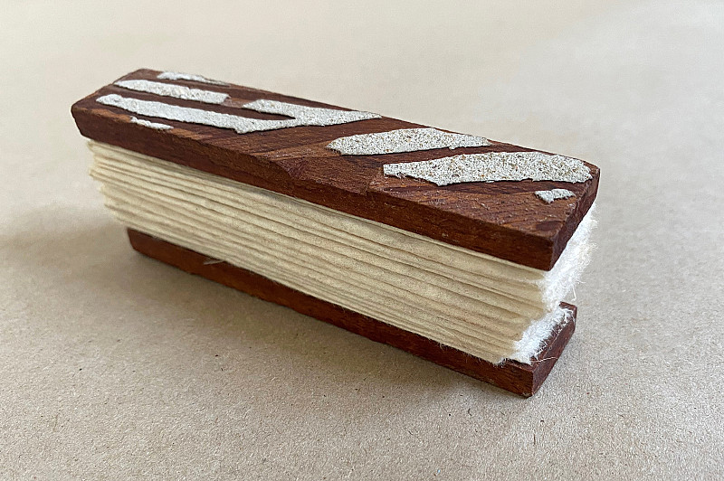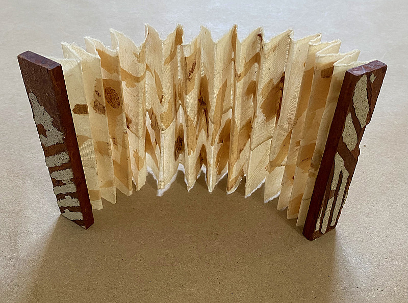 , Emma Willemse , Cover: Discarded parquet floor blocks. Inner: Scrim and mixed media on lightweight Sisal paper