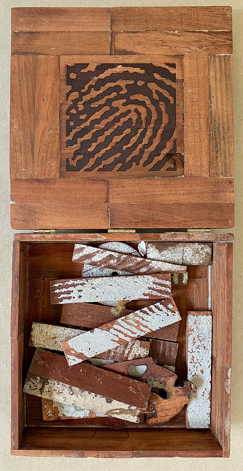 , Emma Willemse , Parquet floor blocks, laser engraving, steel hinges