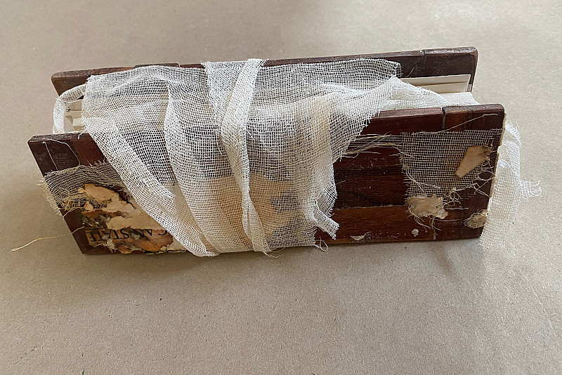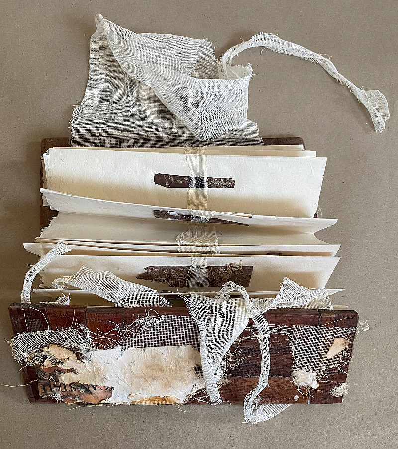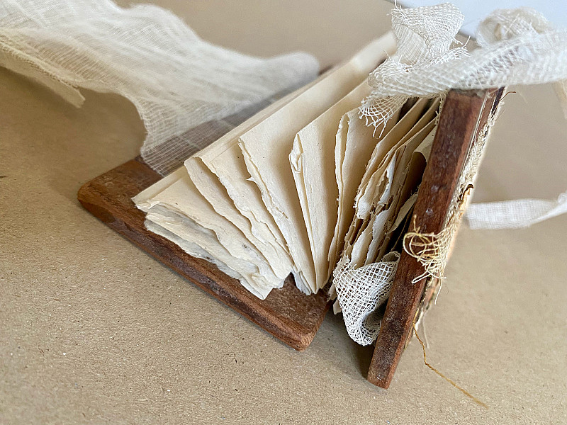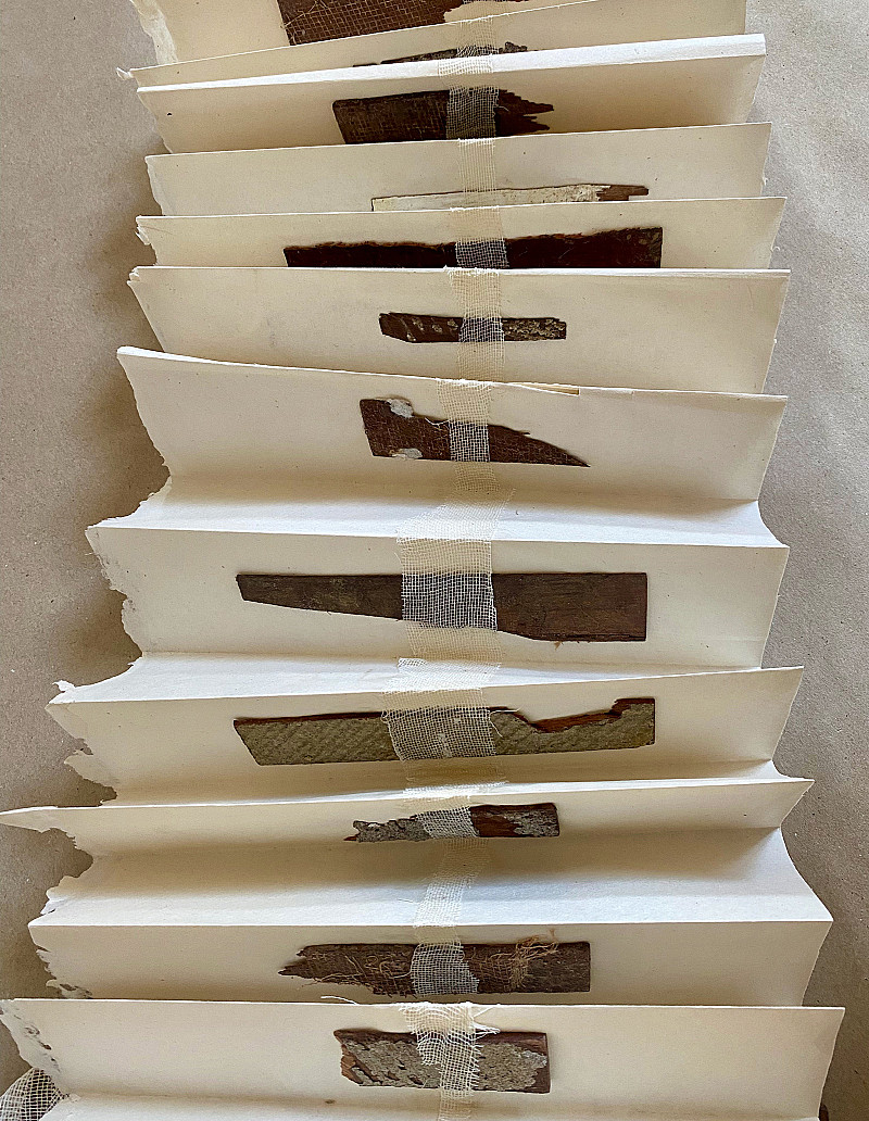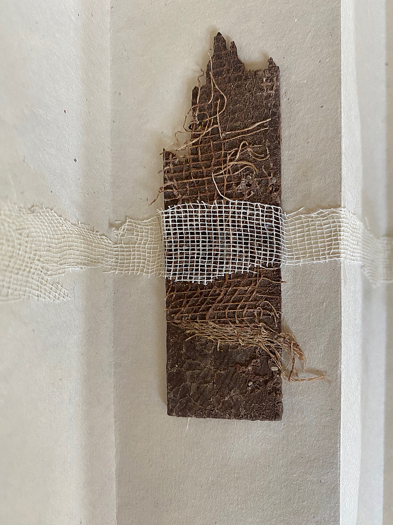 , Emma Willemse , Covers: Parquet floor blocks, scrim. Inner: Wooden shards and scrim on Sisal lightweight paper