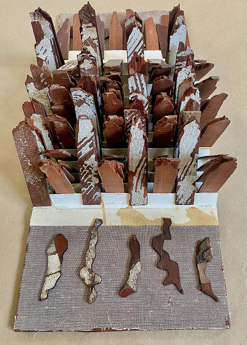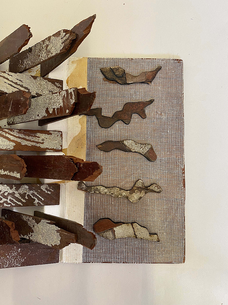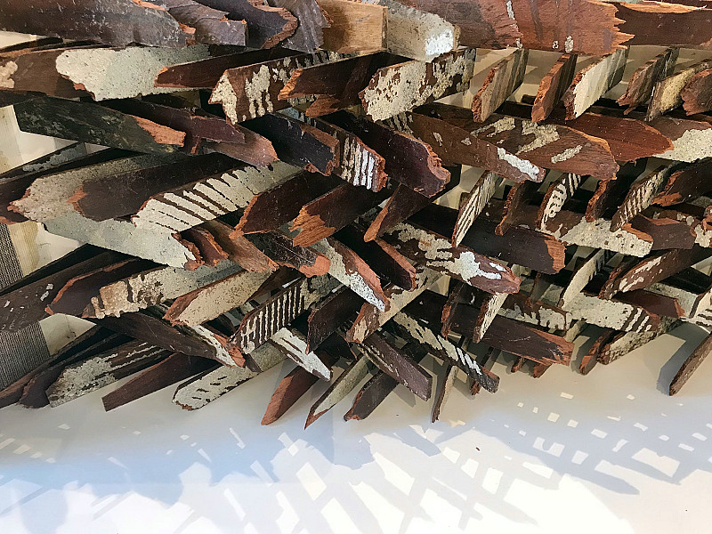 , Emma Willemse , Discarded parquet floor blocks, scrim, paper