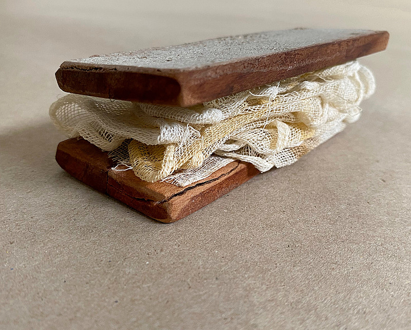 Cover: Parquet floor blocks. Inner: Scrim and ink stains