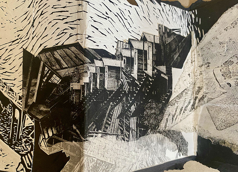 Cover: Parquet floor blocks. Inner: Linocut, digital print collage