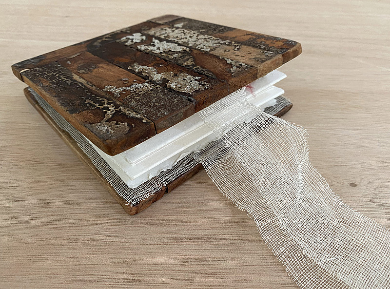 Cover: Parquet floor blocks. Inner: mixed media collage