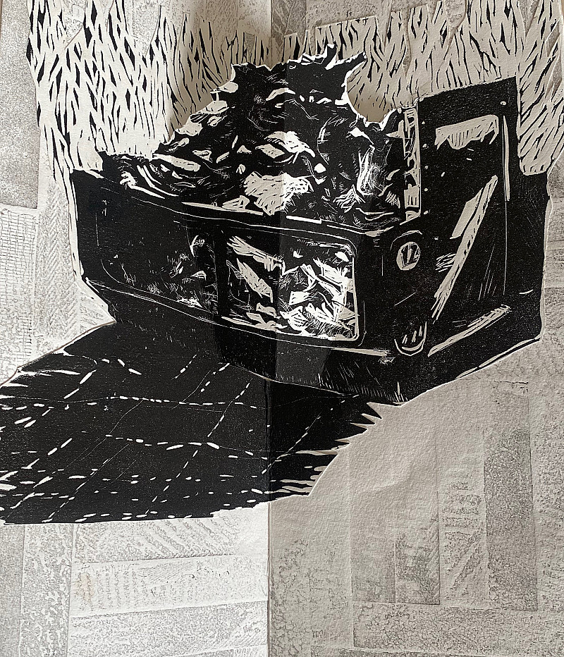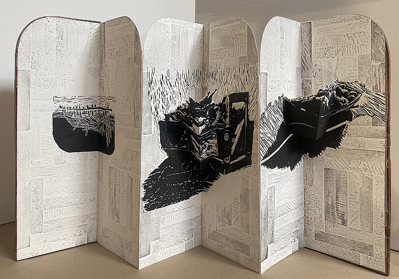 , Emma Willemse , Covers: Parquet floor blocks and scrim. Inner: Monotype, linocut, collage